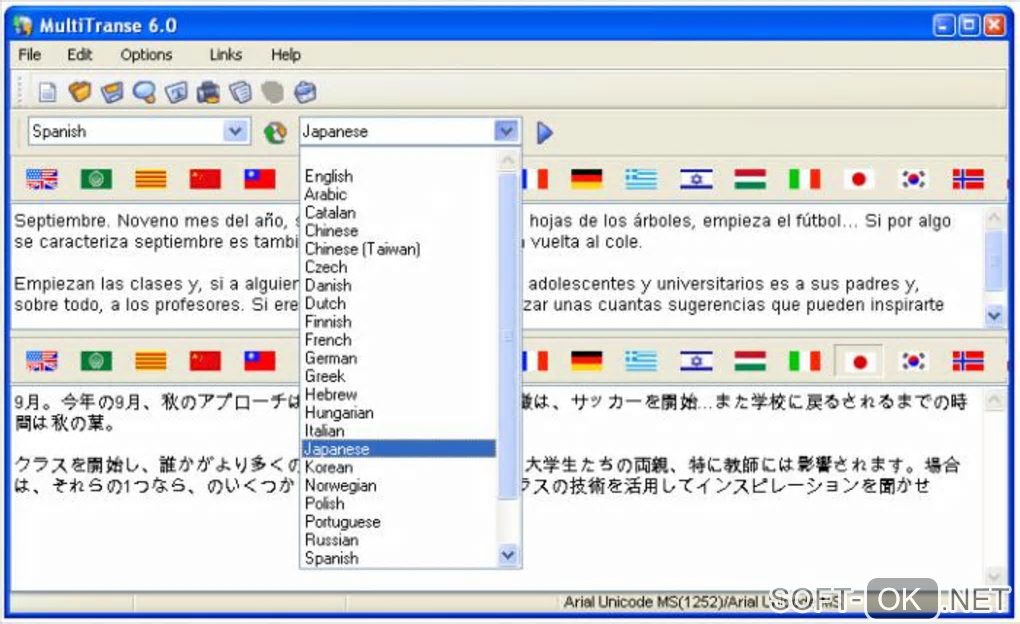 English / Russian / Turkish / French / Dutch / Spanish / Arabic / Greek / Italian / Catalan / Hindi / German / Czech / Swedish / Korean