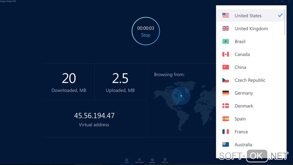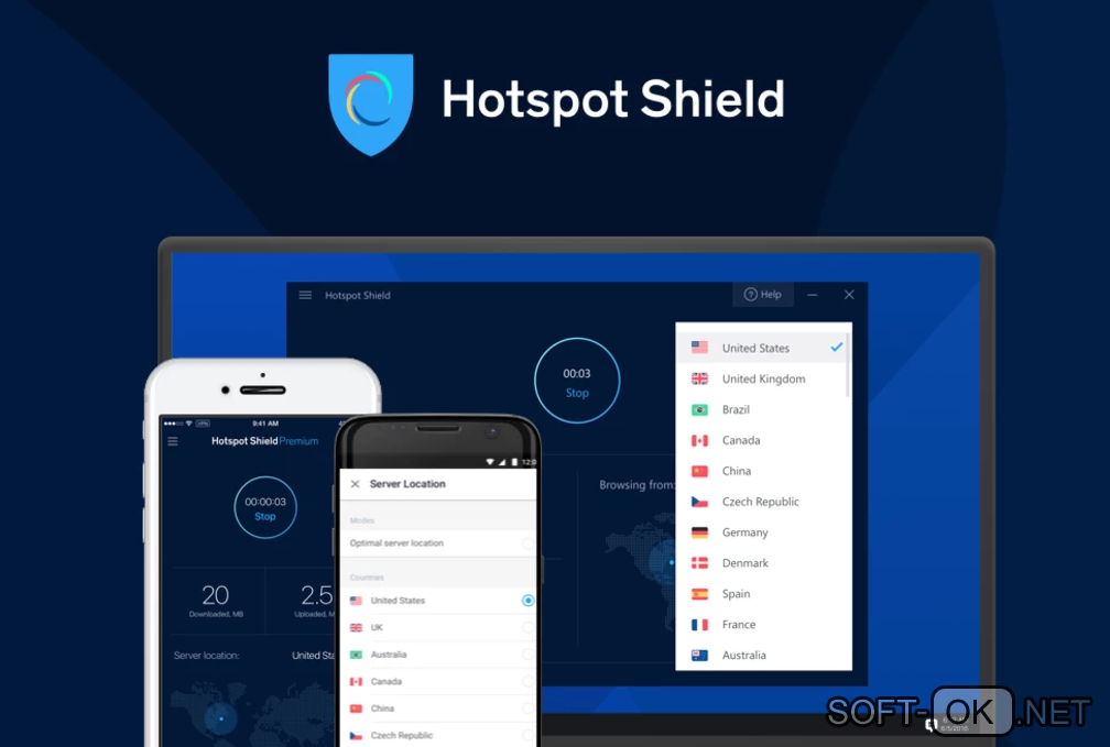 Essentially, Hotspot Shield creates a virtual private network (VPN) between your Android device and your ISP. And thanks to the presence of VPN you will be protected from the eyes of spies, hackers, Internet providers, and any suspicious activity directed against your privacy and security. Also, this program will help you access websites that contain geographically restricted content.