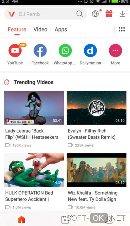 In the Vidmate settings you can select the list of sites that will be displayed in The main application window. By default, the main window will have links to the most popular sites (YouTube, Metacafe, Dailymotion, etc.), but you can always add links to more than 20 different sites from which you can download millions of videos and songs.